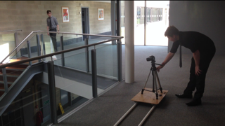 What we found, however, was that without weighing down the board of the dolly, the movement was shakey. Our progression in learning about this process can be seen by the steadiness of the final shot. We decided to borrow weights from the Science department which worked perfectly.